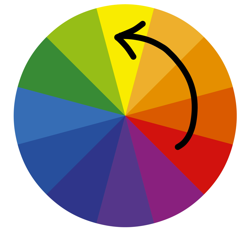 Color temperature refers to its apparent warmth. Looking back at our three primary colors, red and yellow are considered warm colors, whereas blue is regarded as a cool color. Each color's respective warmth changes as we move around the color wheel.