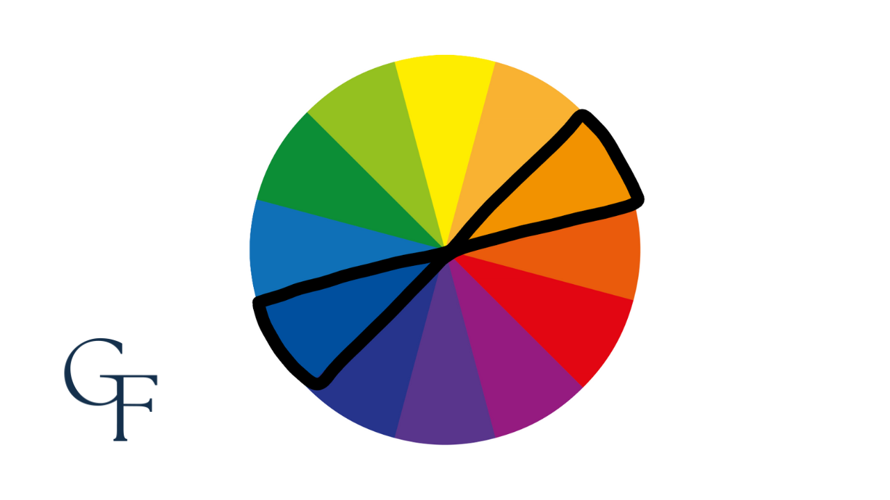 Similar to complementary colors, this palette starts with a single color from the wheel and its two direct correlative colors of that single color's complement. For example, red-orange and yellow-orange are the split complementaries of the primary color blue (see below).