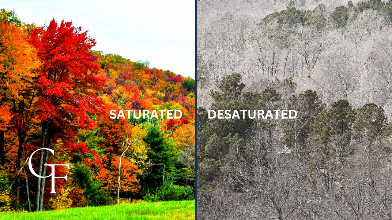 This general intensity level is known as a color's saturation. If the color is dull and grayed out, then it is desaturated. Conversely, it is more saturated if the color is brighter.