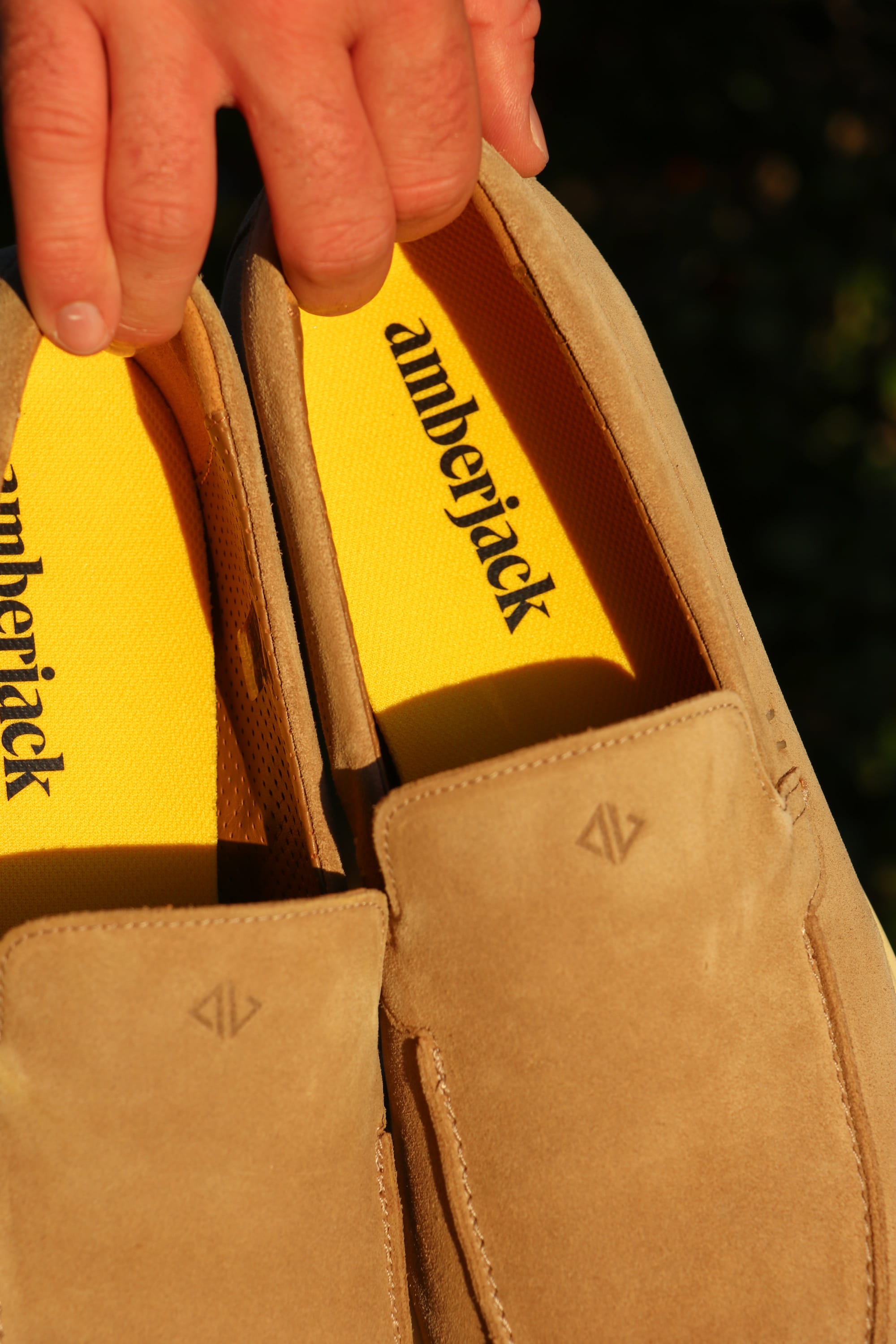 Amberjack's comfortable loafers are crafted from water-repellent Italian suede and feature a sheepskin lining. They use A-grade full-grain leather from top-rated tanneries in the U.S. or Argentina.