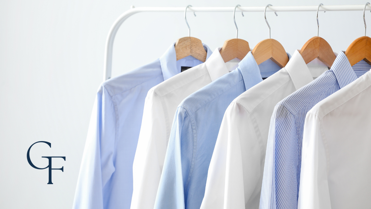 Dress shirts pair nicely with blazers, sport coats, dress pants, and chinos. To get started, you need only a quality white poplin dress shirt and an ice blue Oxford-cloth dress shirt, with the white variant being more formal.