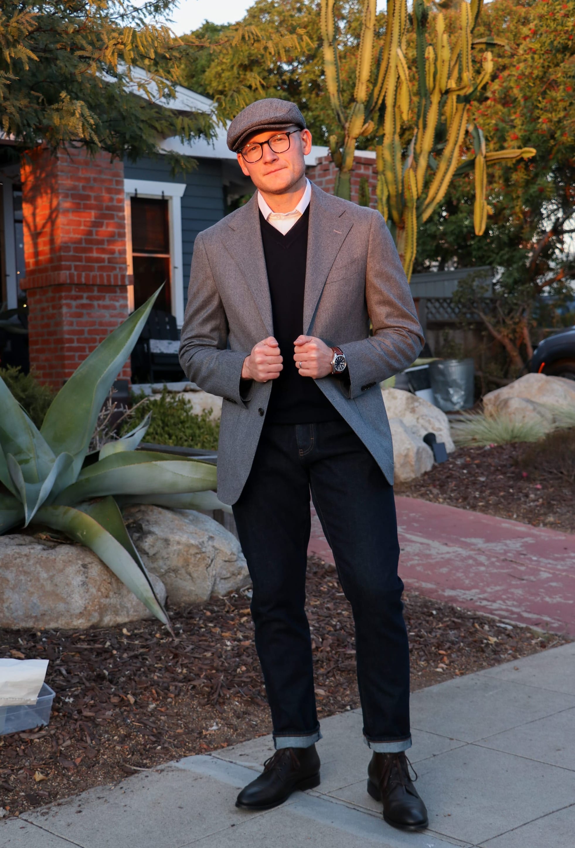 OUTFIT #7: SPORT COAT, V-NECK SWEATER, JEANS, & BOOTS