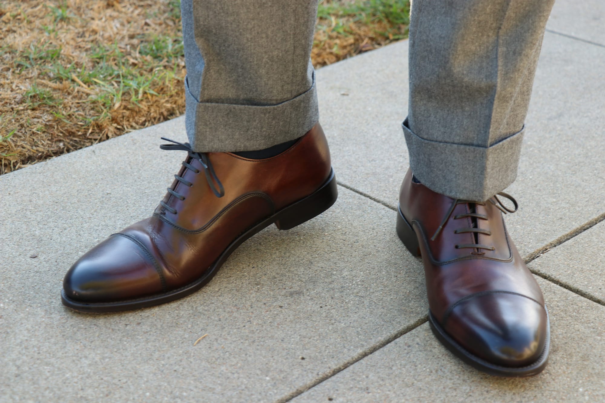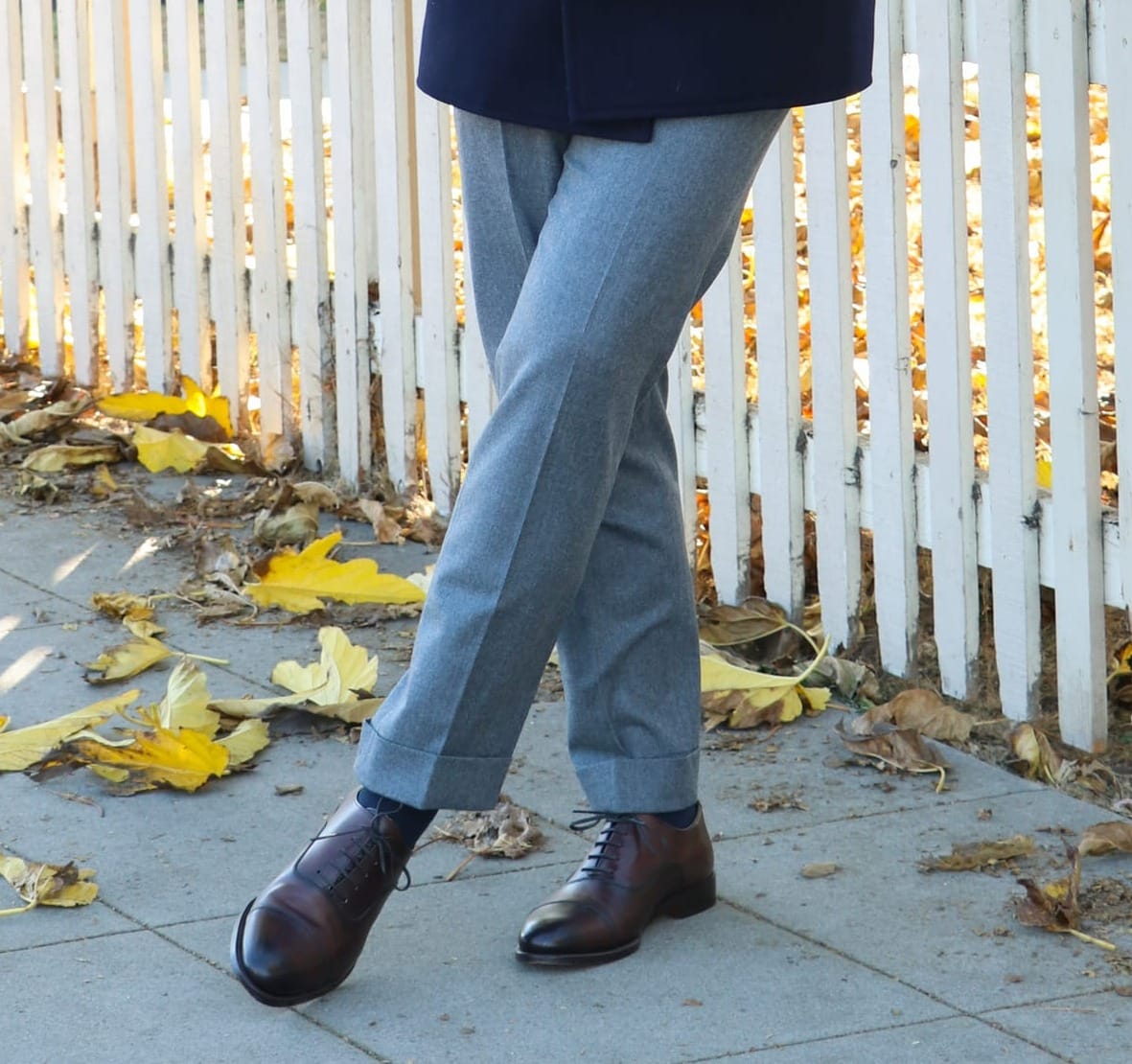 For example, classic leather Oxford dress shoes are a great way to remain timeless, but brown dress shoes in soft suede leather will look great when paired with dark-wash jeans, chinos, or odd trousers made of materials such as tweed, corduroy, linen, etc.