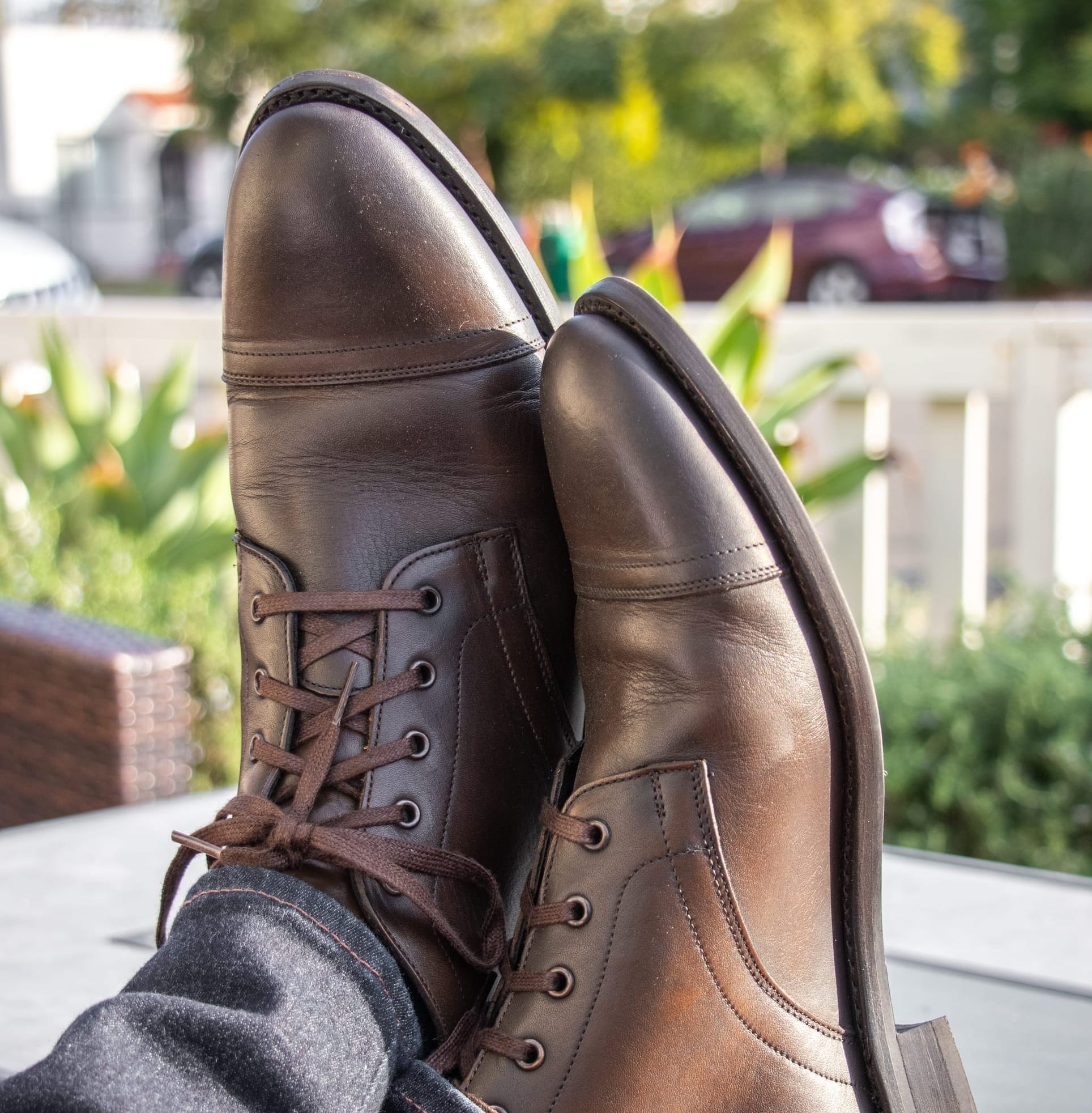 For those who like boots or need something warmer and sturdier for the fall and winter months, look no further than a brown leather cap-toe lace-up boot or leather Chelsea boots.
