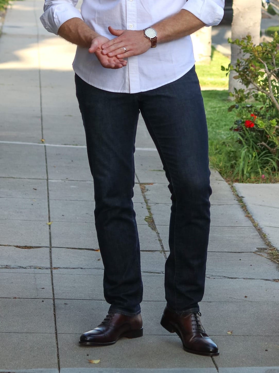 White sneakers are another highly versatile shoe type, but they are certainly the most casual footwear option I recommend to any man for a dress code like this.