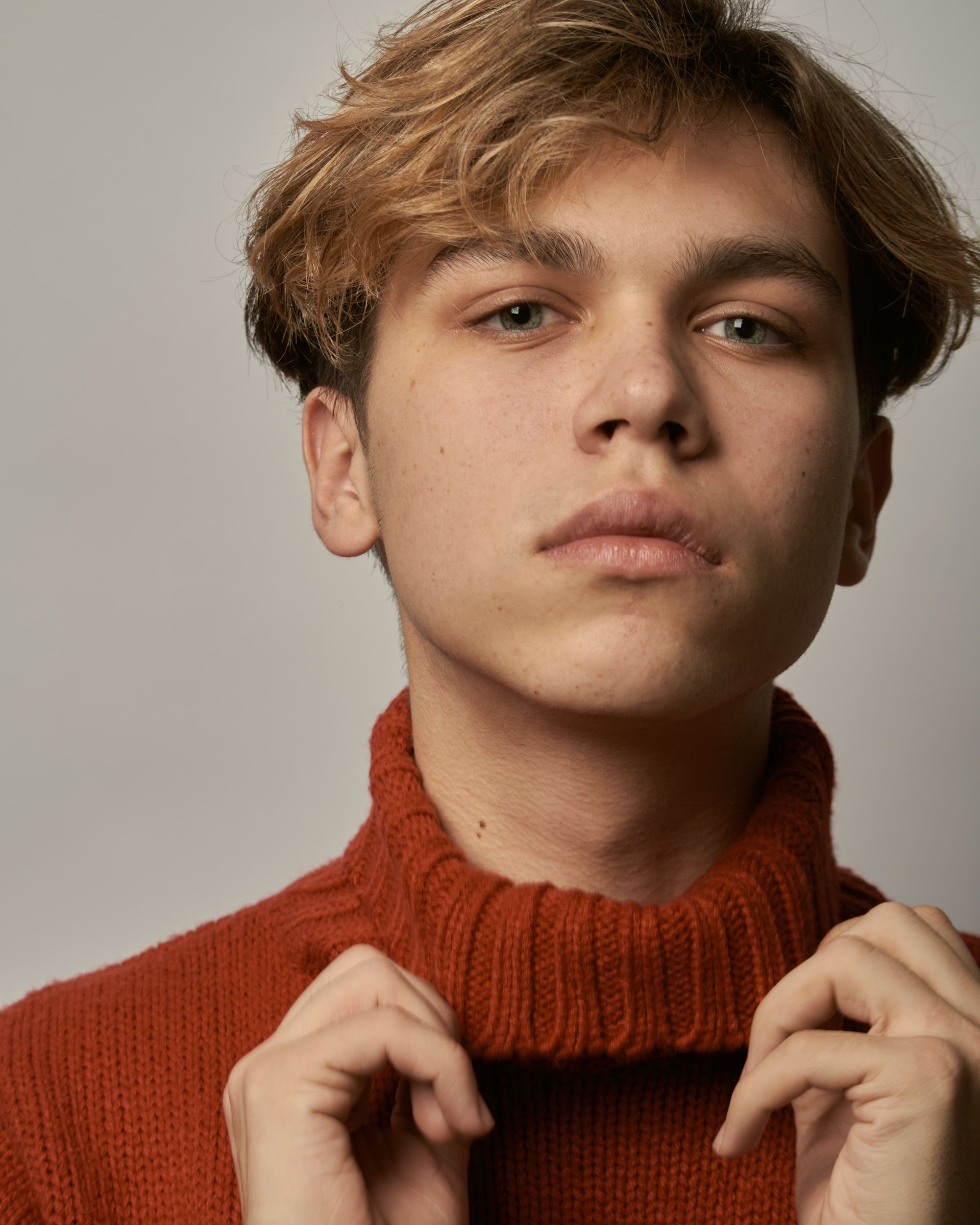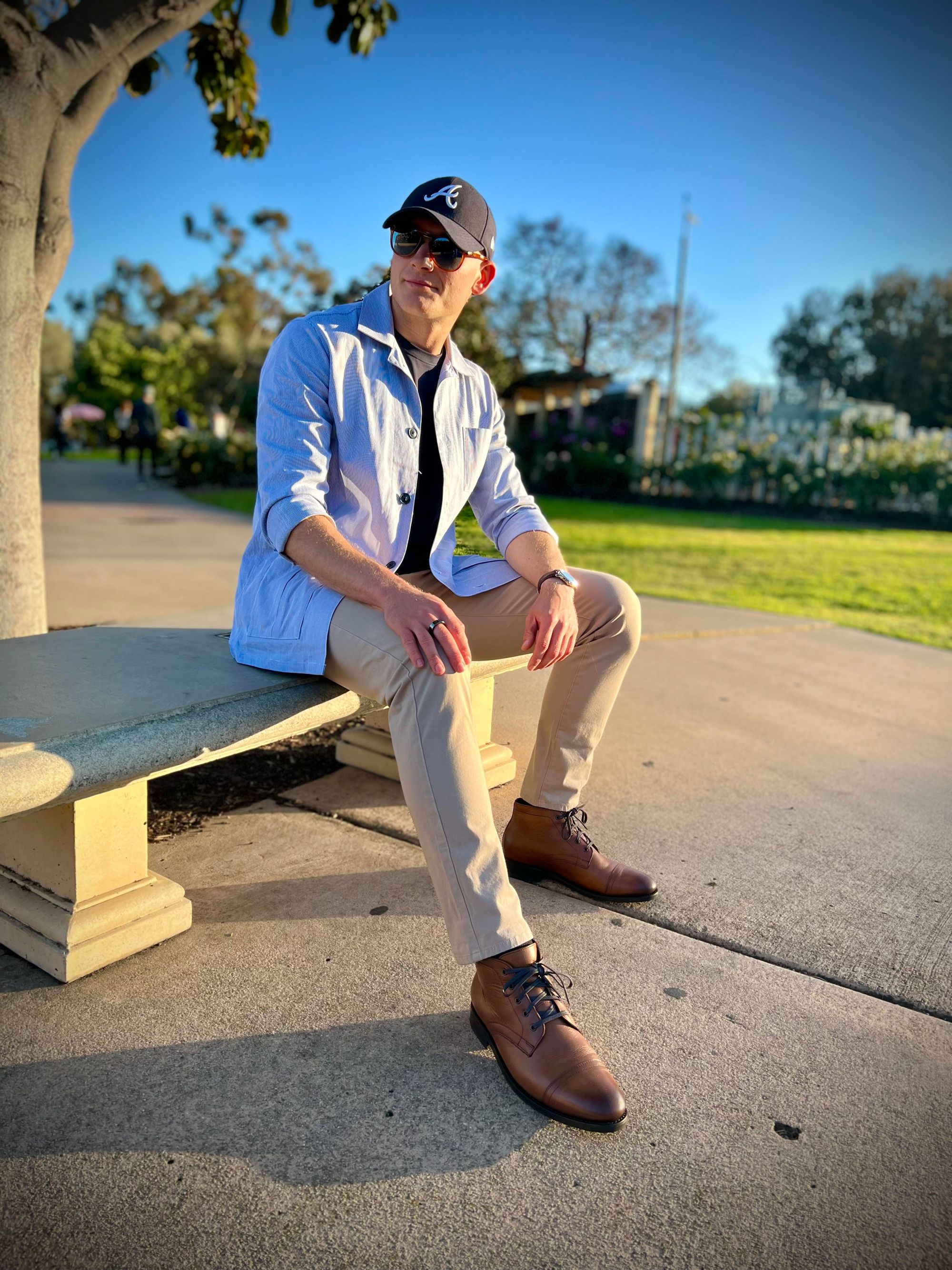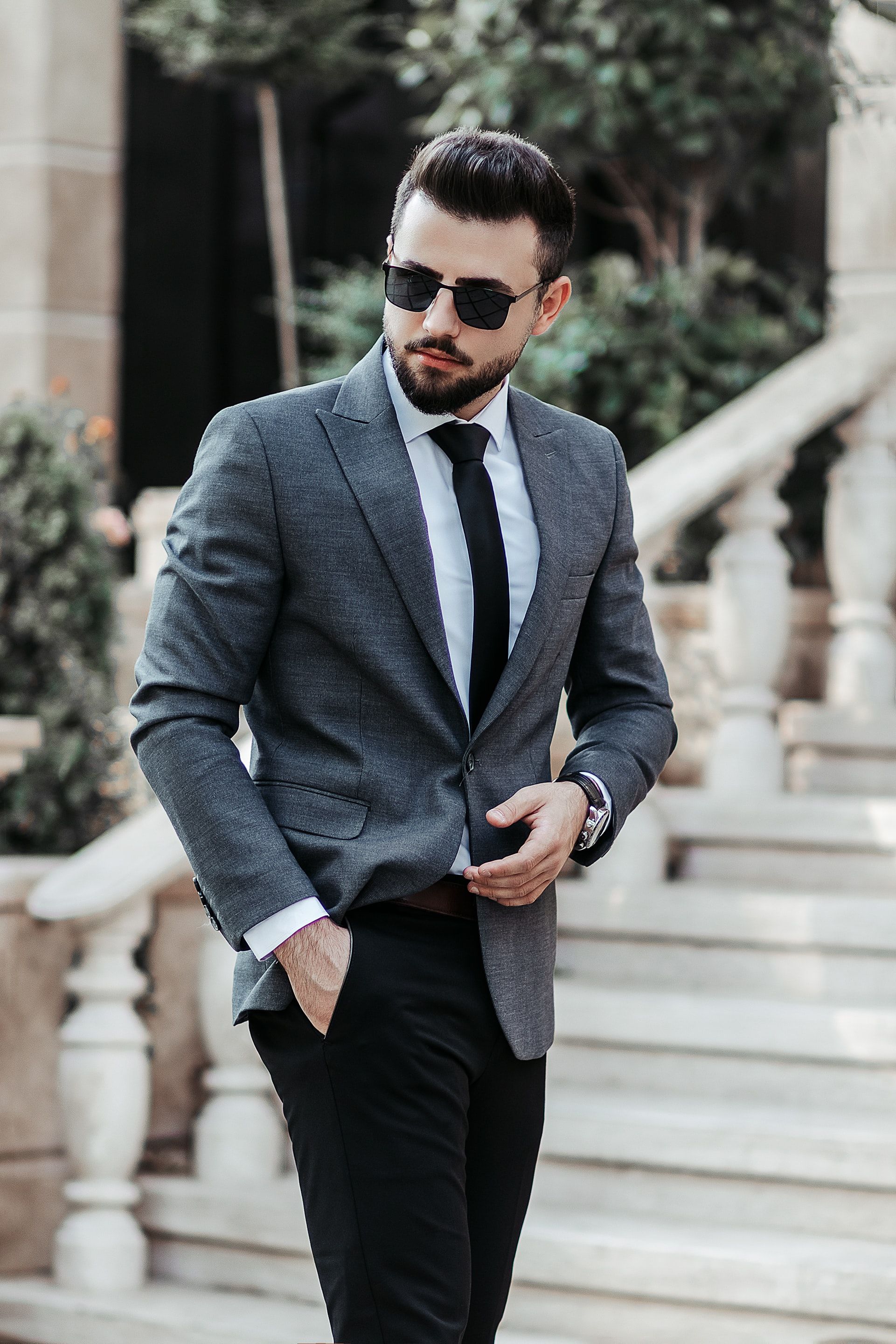 This man is medium-contrast due to his relatively light skin but darker hair, and this creates apparent differences but is not substantial enough to be considered high-contrast. Outfits that would work best on men like this would be (you guessed it) medium-contrast outfits that complement their medium state.