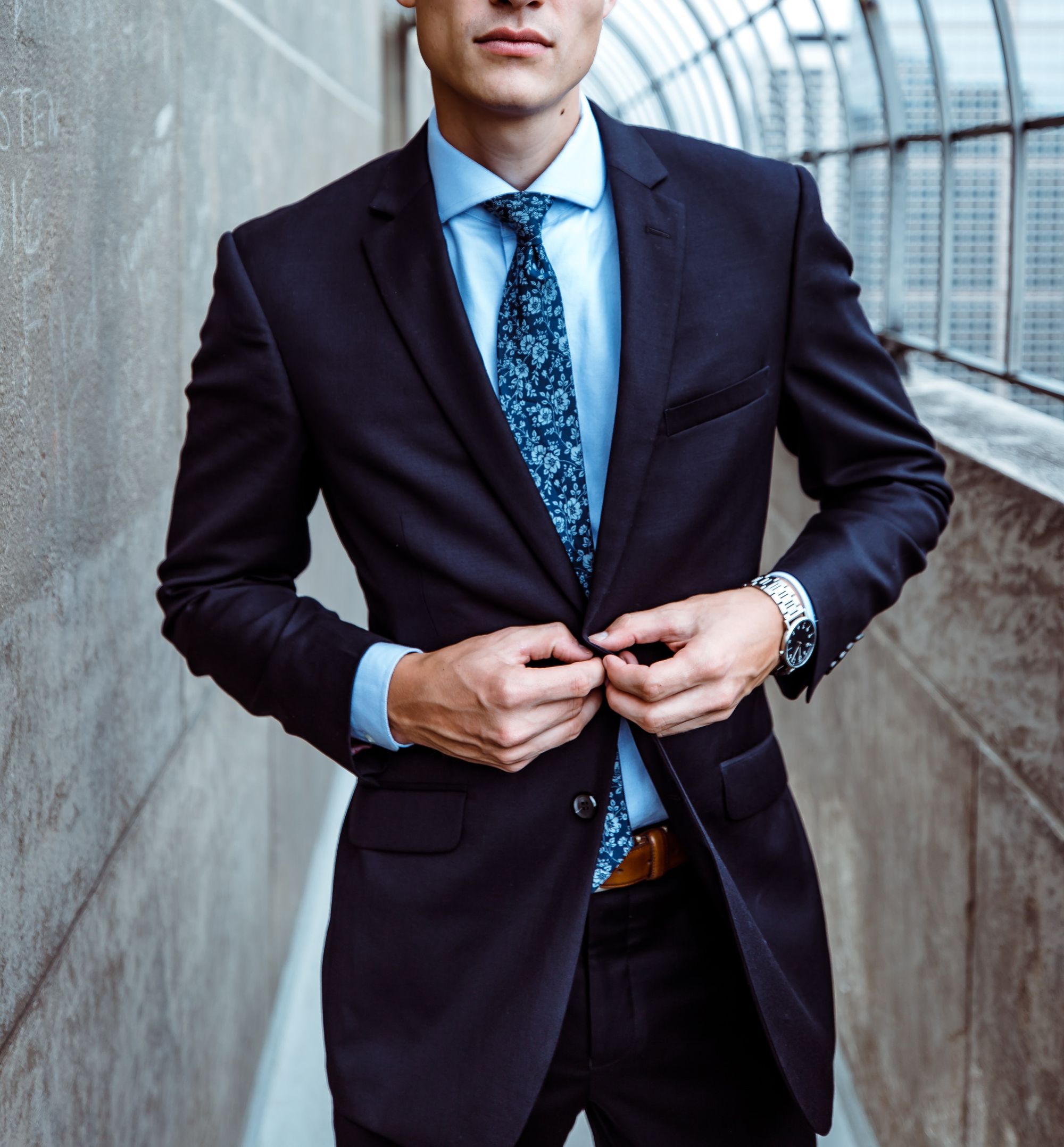 For a semi-formal look, I want you to look elegant and timeless. Therefore, I suggest wearing a suit in versatile suit colors. Navy and grey are, no-questions-asked, the best options.